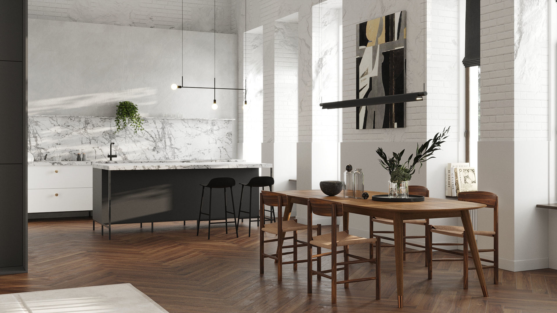 家具や照明まで緻密に再現された3DCGで、まるで現地にいるかのような臨場感を演出